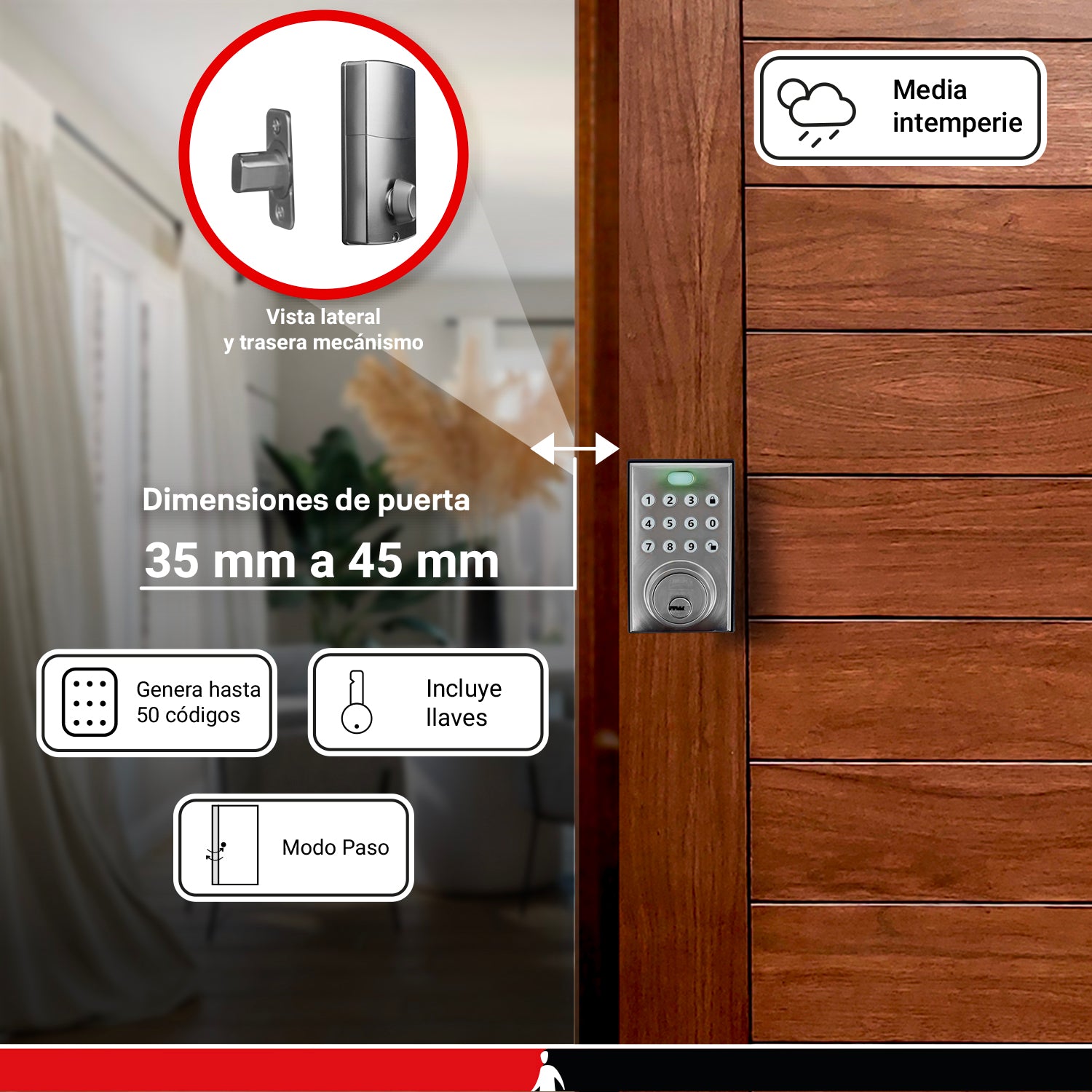 Es una cerradura digital que ofrece seguridad innovadora y confiable, se puede instalar fácilmente en tu puerta y permite la apertura con un código seguro, lo que la convierte en una excelente solución de seguridad para tu hogar o negocio.