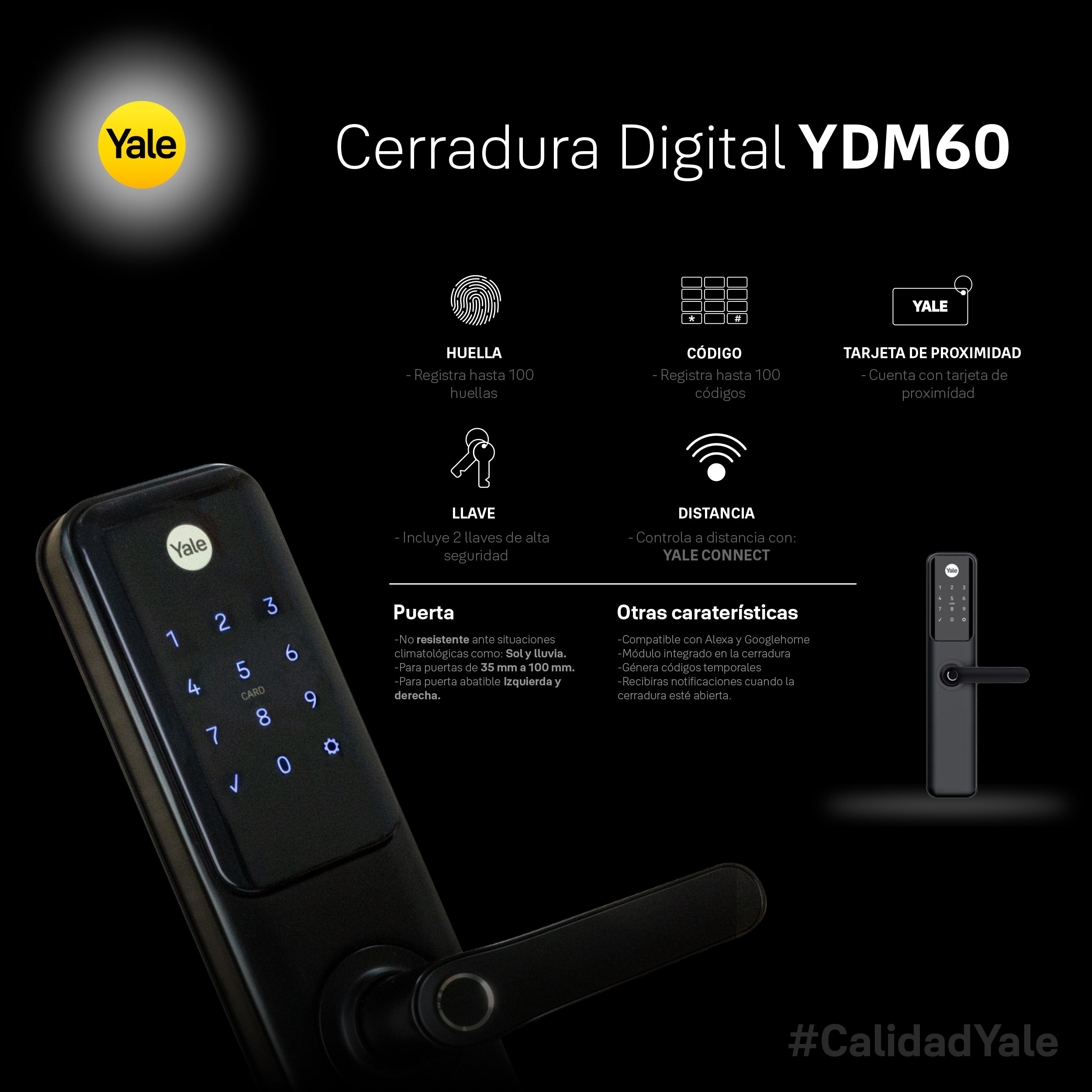 Respaldada por más de 180 años de experiencia en seguridad. La YDM60 combina tecnología de punta con la confiabilidad que solo Yale puede ofrecer.