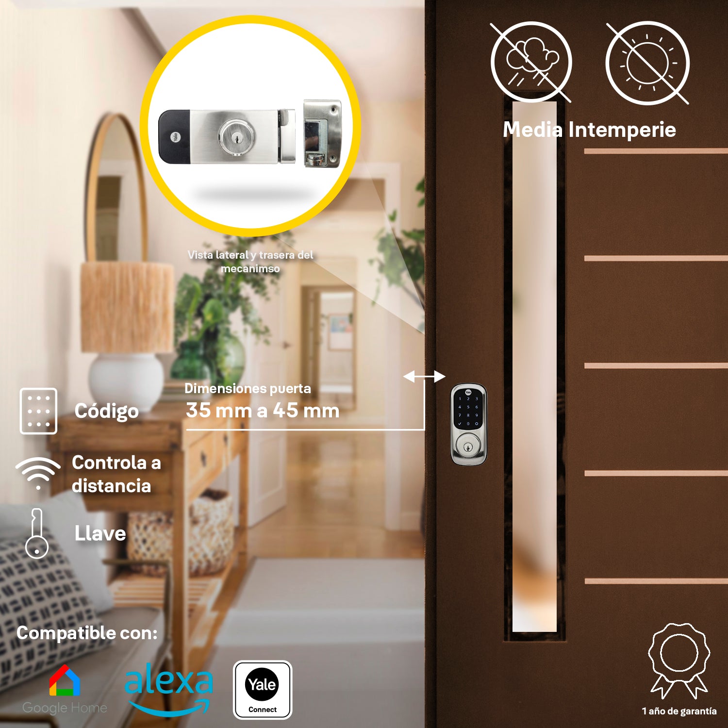 Ideal para: Puertas principales, accesos exteriores, negocios, oficinas y cualquier entrada que requiera protección contra elementos climáticos.