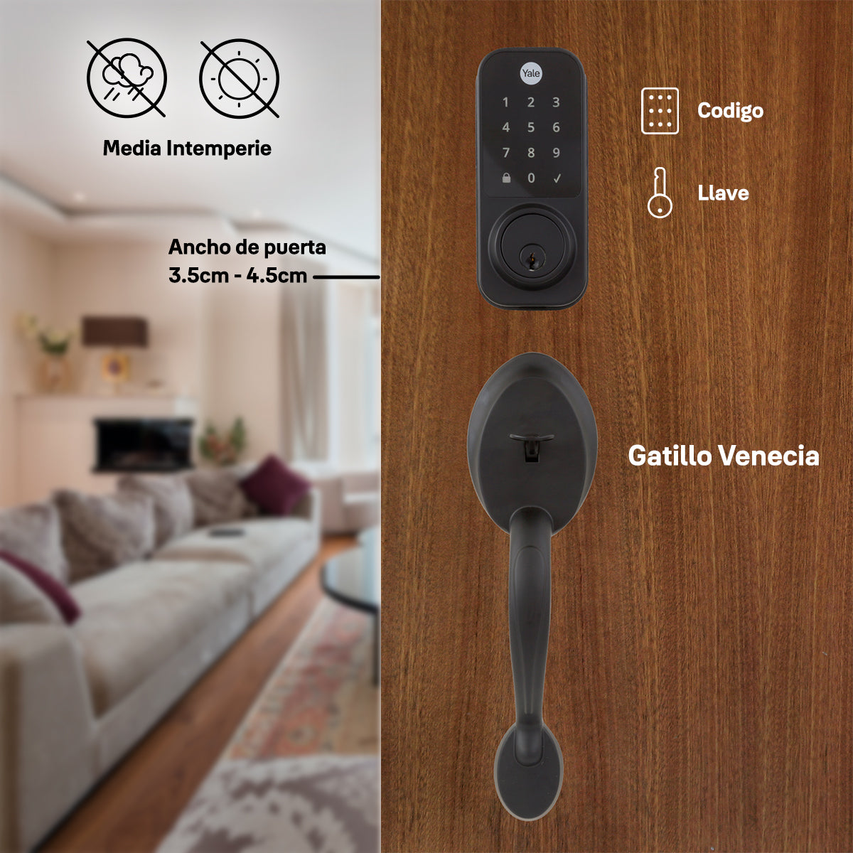 La seguridad comienza con el Cerrojo Digital YDD120 Negro + Gatillo Venecia. Esta combinación ofrece la mezcla perfecta de modernidad y estilo clásico para satisfacer tus expectativas de seguridad sin comprometer tu gusto por la elegancia. Disfruta de la tranquilidad que proporciona la última tecnología en mecanismo en tu puerta.