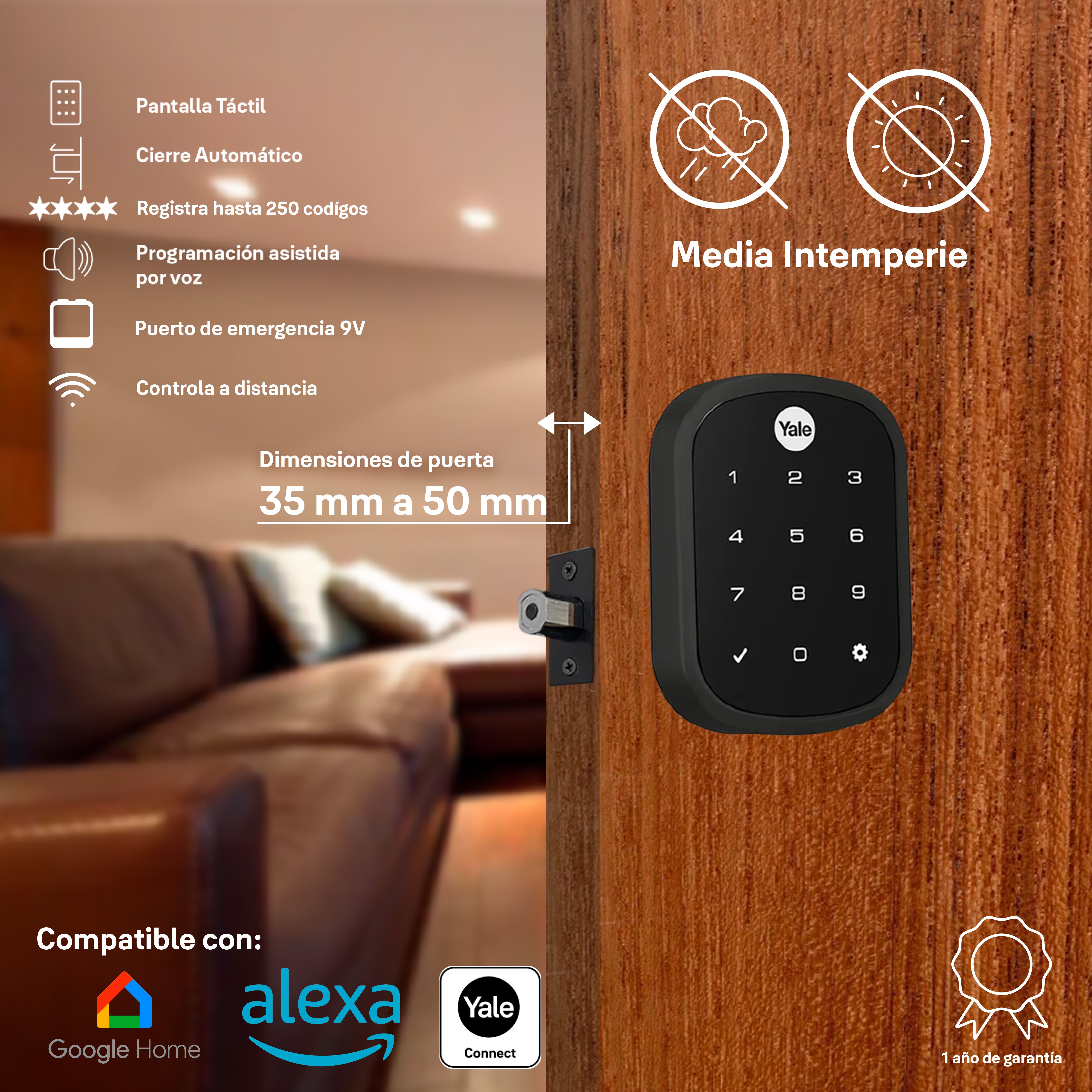 La tecnología Yale garantiza protección de grado comercial para tu hogar. El sistema de encriptación protege tus códigos y credenciales, mientras que la construcción robusta resiste intentos de manipulación.